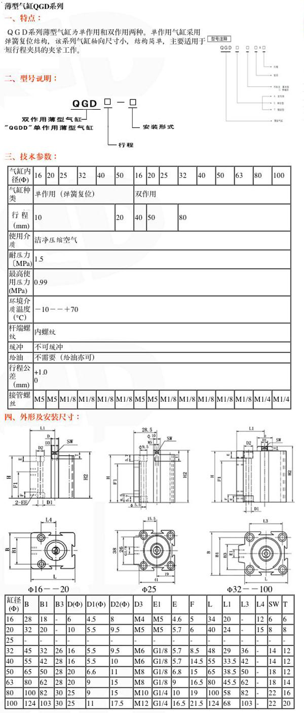 薄型氣缸QGD系列
